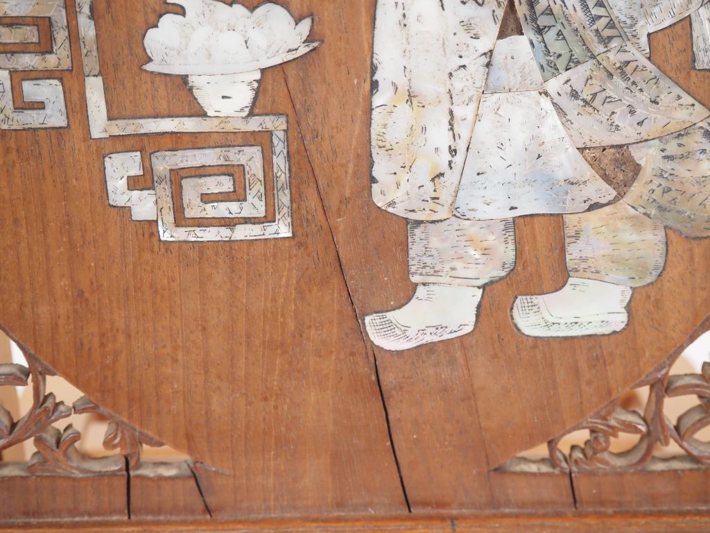 Panneau indochinois en marqueterie de nacre "jeune homme à la branche ...