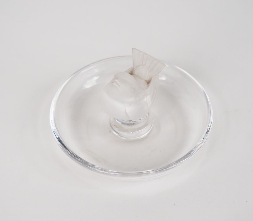 LALIQUE France. Baguier en cristal à décor de moineau. Signé