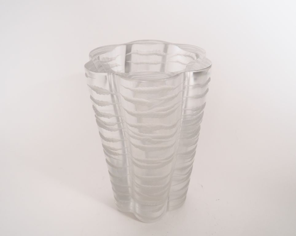 Marc LALIQUE. Vase en cristal poli de forme polylobée. H. 29,5 cm. (petites rayures).