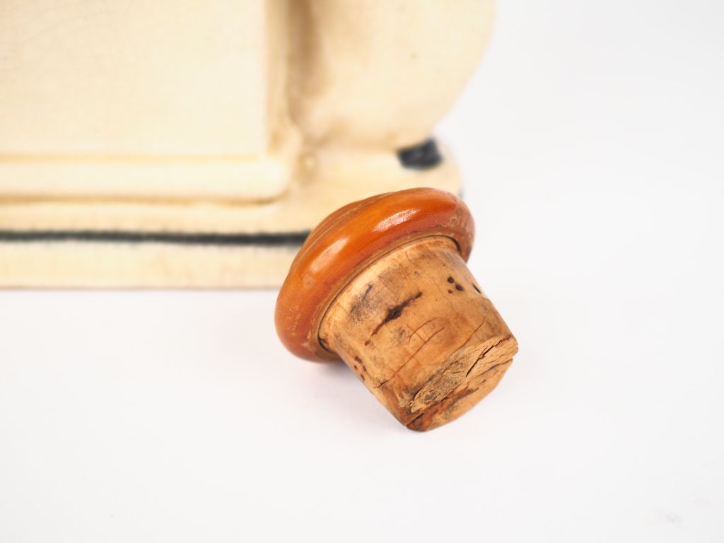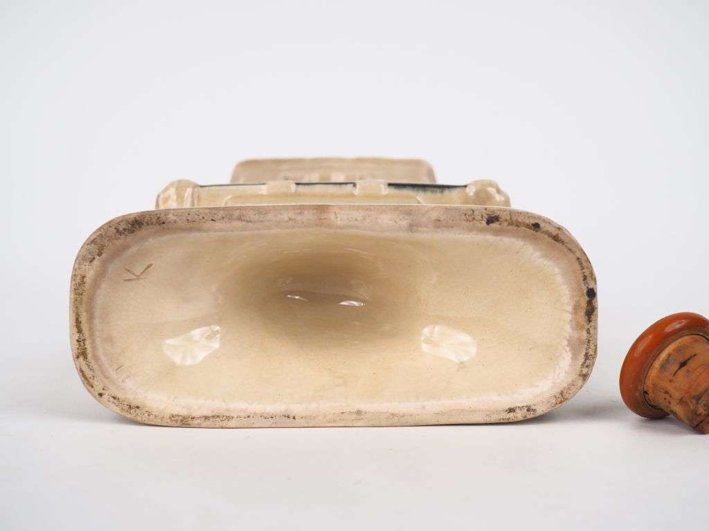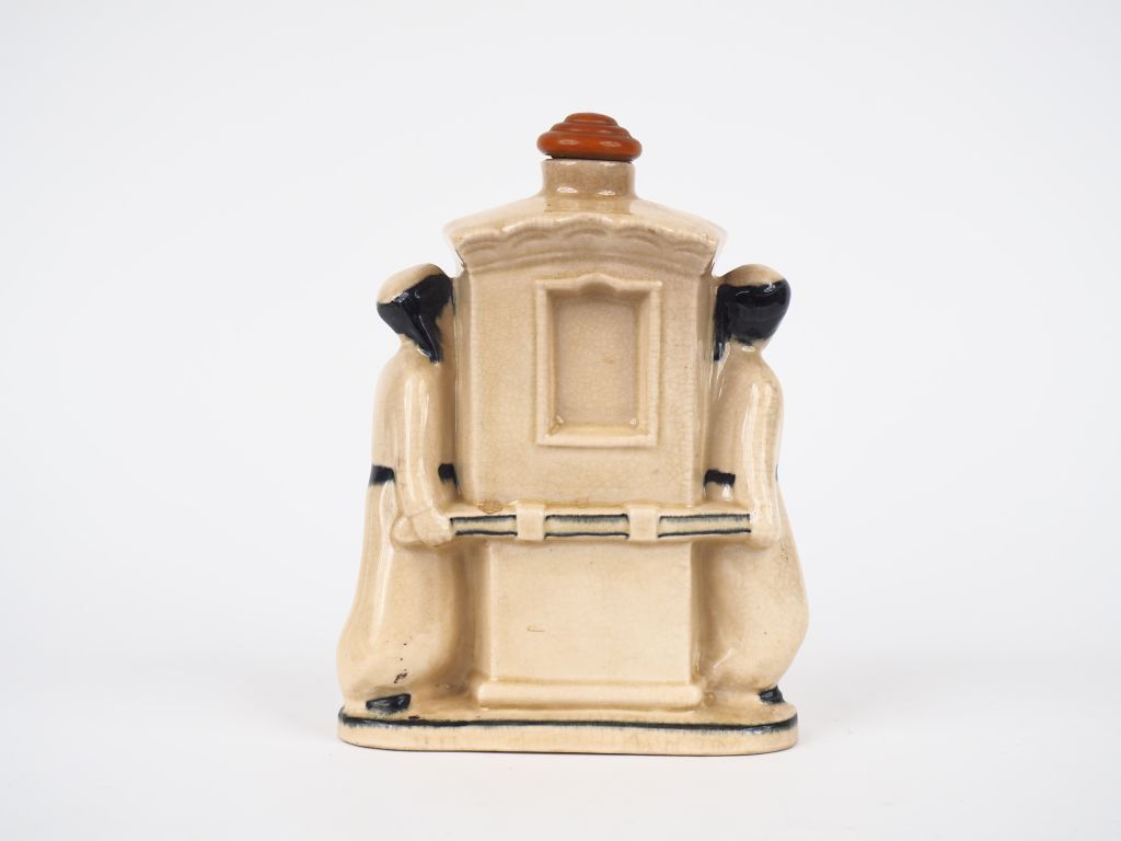 Pichet Art Déco en faïence polychrome en forme de chaise à porteurs. Dim. 21 x 15 x 6,5 cm.
