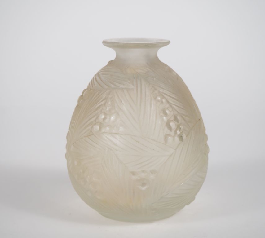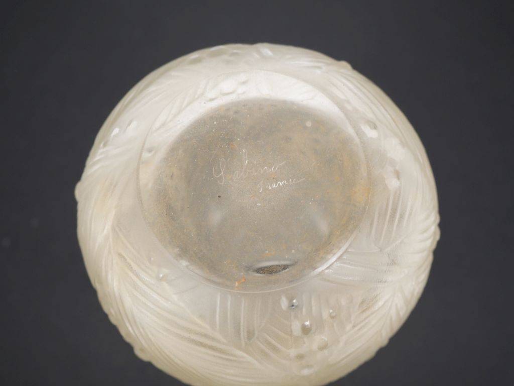 SABINO. Vase ovoïde en verre translucide à décor de feuilles et de baies. Signé. H. 10 cm.