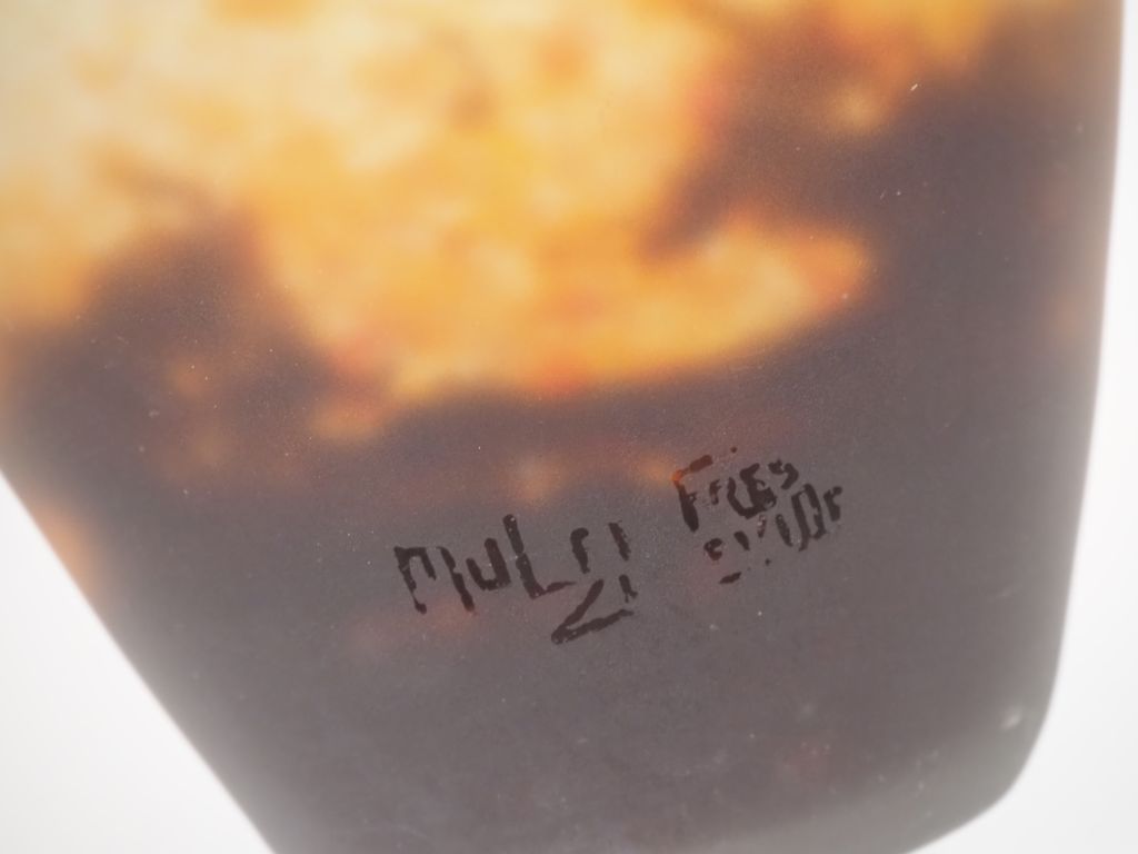 Lot de MULLER Frères à Lunéville. Paire de vases en verre moucheté. Signée. H au prix de 150 à 200 € en vente aux enchères par l'hôtel des ventes Primardeco