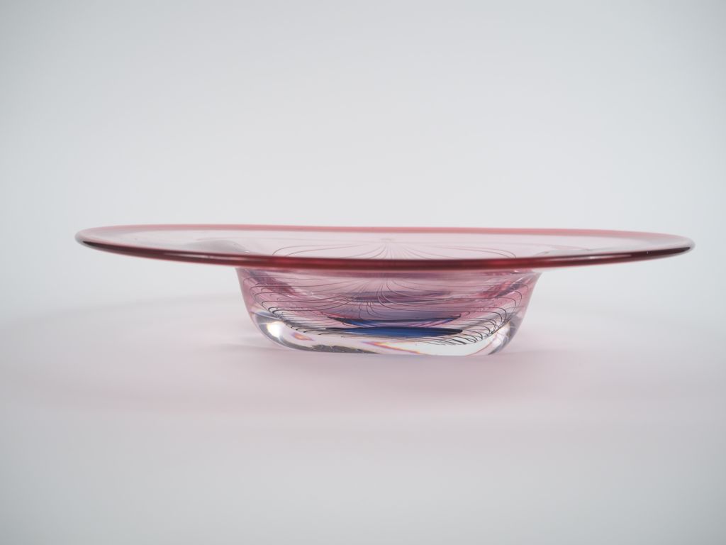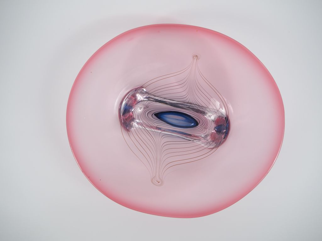 A. JABIONSKI. Une coupe en verre rosé et bleu nuit. Dim. 8 x 35 x 39,5 cm.