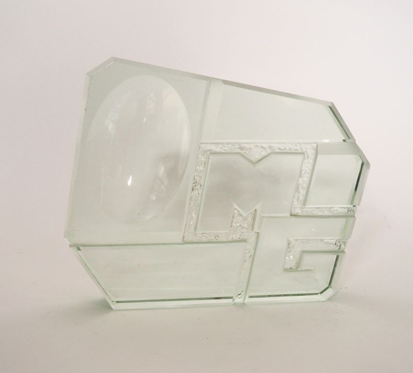 Aristide COLOTTE à Nancy. Accessoire de bureau en verre taillé à la roue et au burin. Signé. Dim. 25 x 20 x 4 cm.