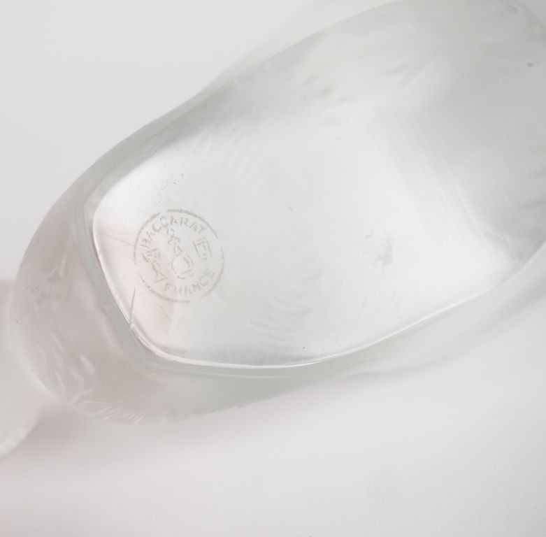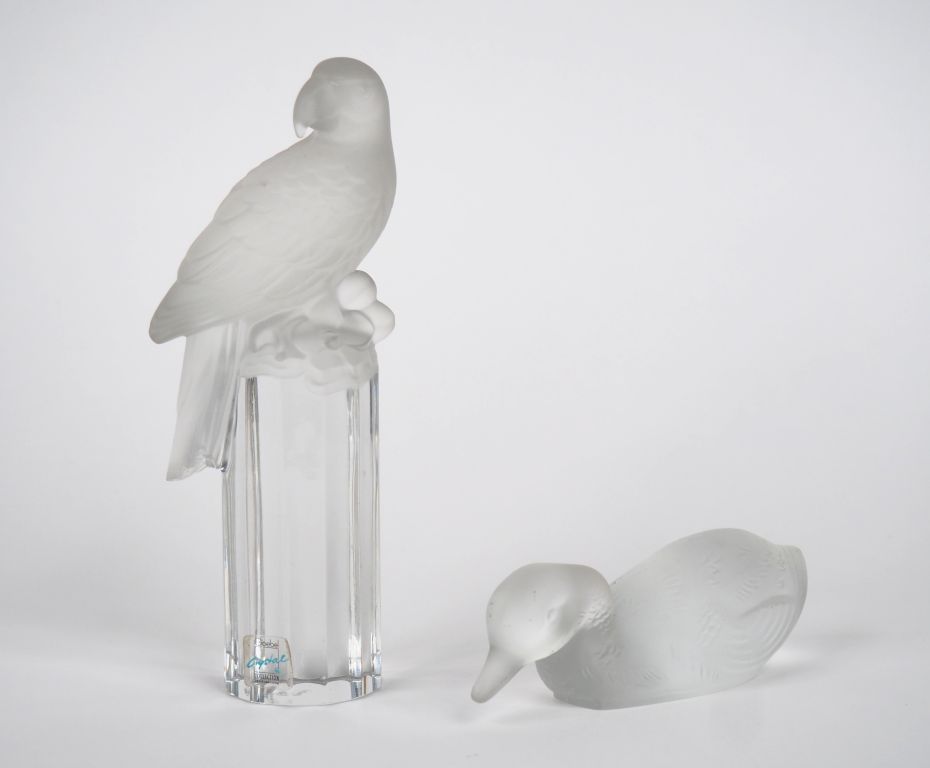 BACCARAT. Canard en cristal Signé on y joint GOEL. Sujet en cristal "le ara perché" (égrenures) H. 18,5 cm
