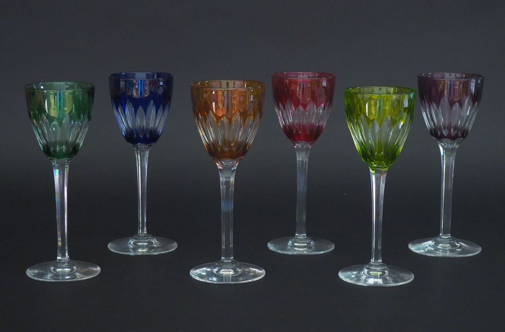 Lot de BACCARAT. Suite de 6 verres en cristal bicolore. Signés au prix de 100 à 150 € en vente aux enchères par l'hôtel des ventes Primardeco