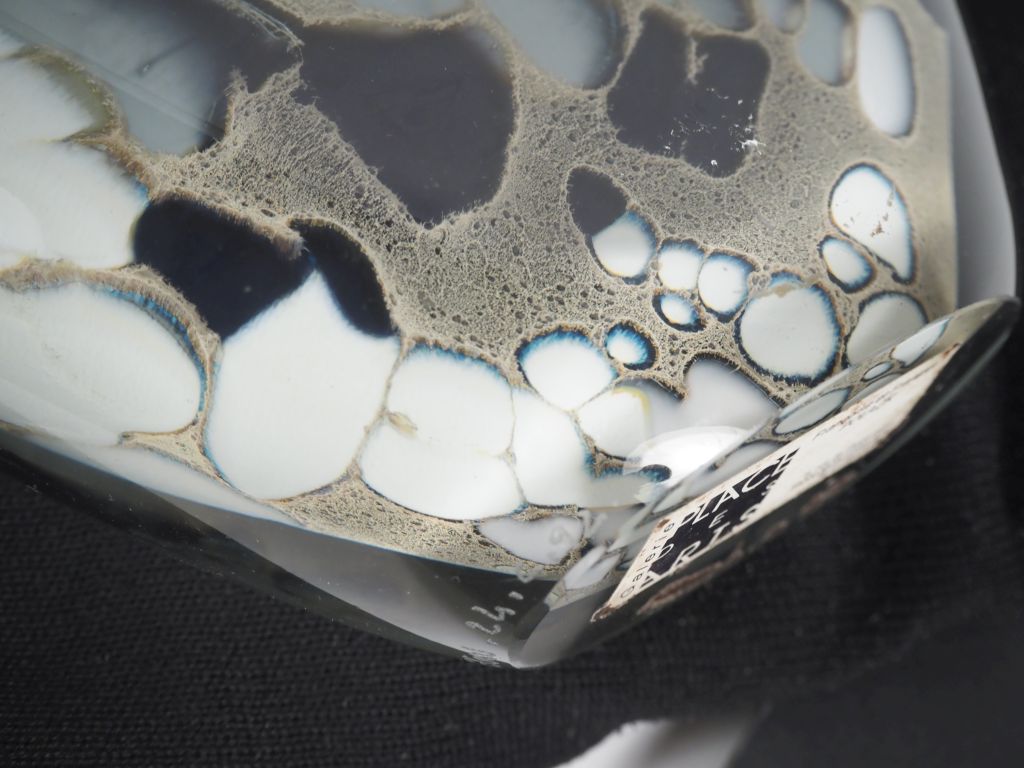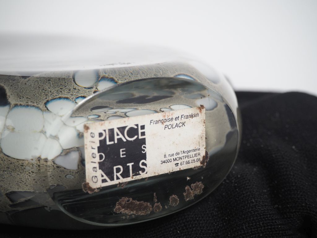 Lot de BEGOU. Grand vase éventail en verre polychrome. Signé et daté 92. Dim. au prix de 100 à 200 € en vente aux enchères par l'hôtel des ventes Primardeco