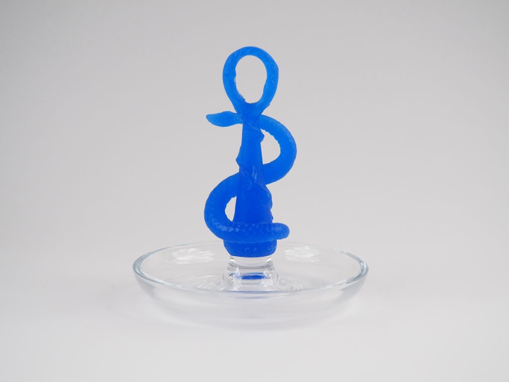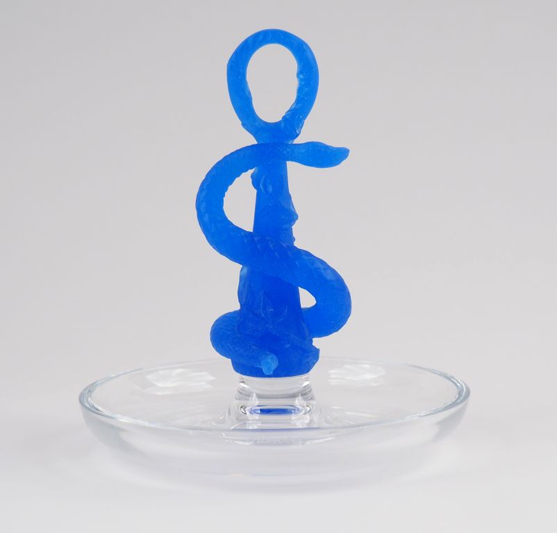 Lot de DAUM. Baguier en cristal et pâte de verre bleue, à décor de serpent. S au prix de 100 à 150 € en vente aux enchères par l'hôtel des ventes Primardeco