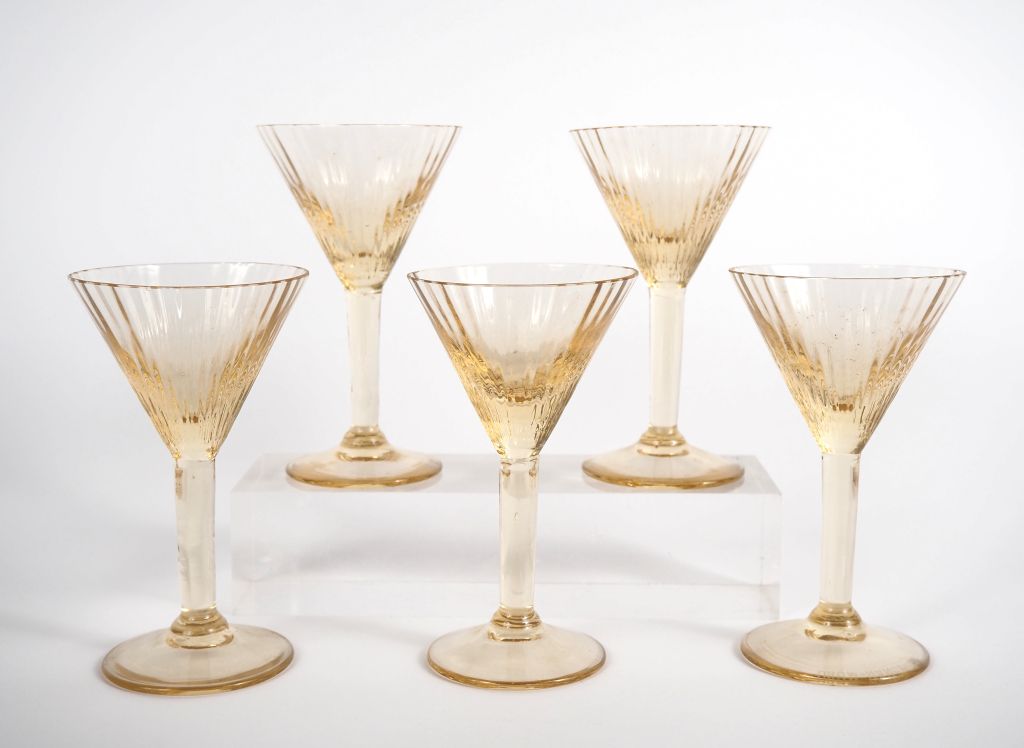 DAUM Nancy. 5 différents verres à pied en verre teinté. Signés.