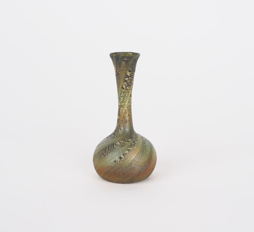 DAUM Nancy. Vase miniature en verre irisé à décor mélé, rehaussé d'or....