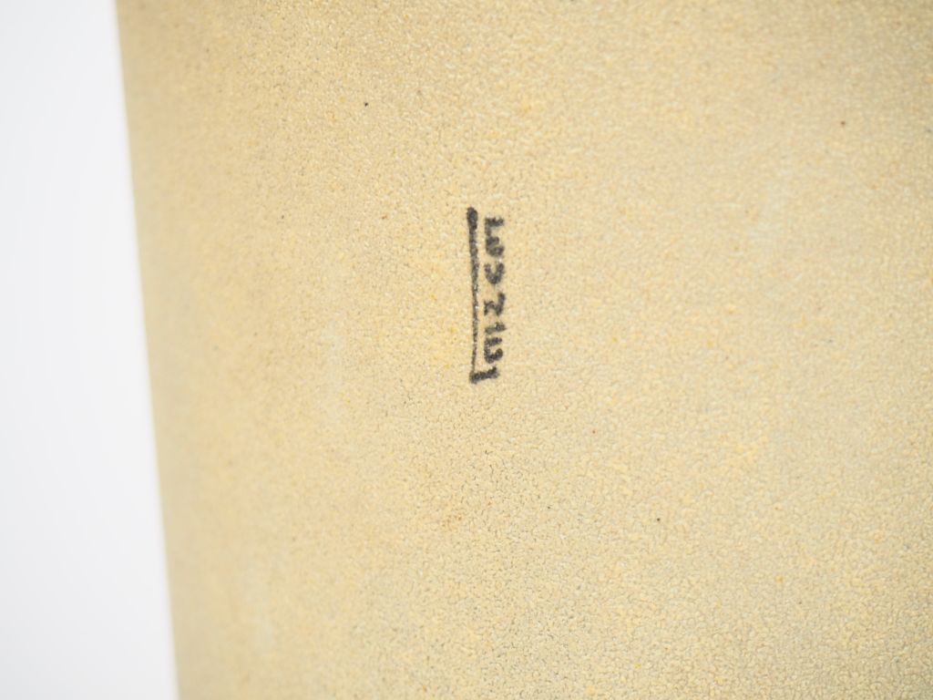 Grand vase rouleau Art Déco en verre émaillé, à décor polychrome, de fleurs, de feuillage et de motifs géométriques. H. 50,5 cm Signé