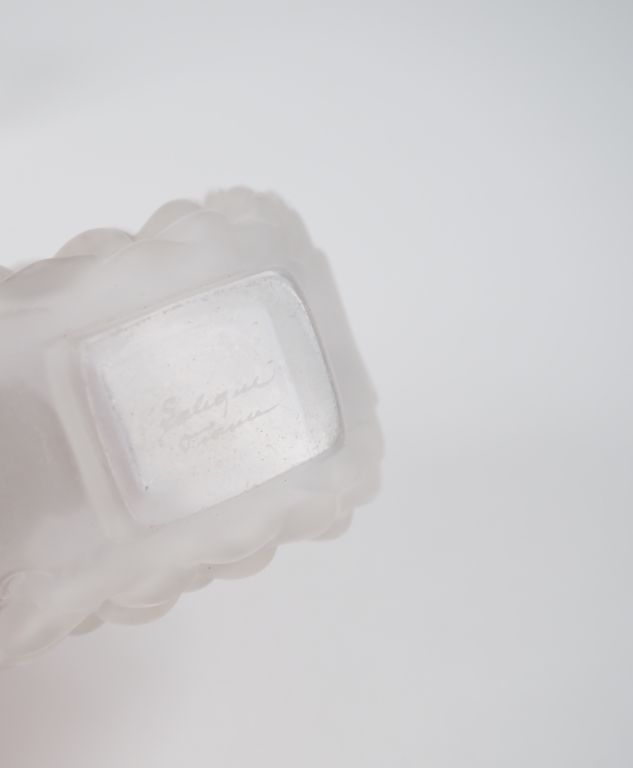 Lot de LALIQUE France. Vaporisateur et boite de toilette en cristal et émail au prix de 50 à 80 € en vente aux enchères par l'hôtel des ventes Primardeco