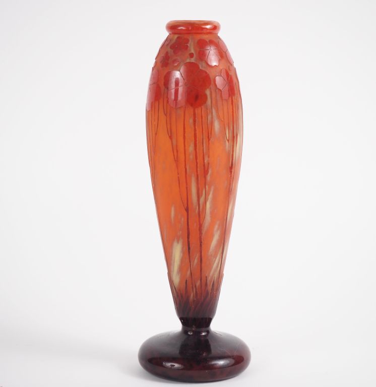 LE VERRE FRANCAIS. Vase "Cardamines" Signé. H. 23,5 cm. (petit défaut de cuisson)