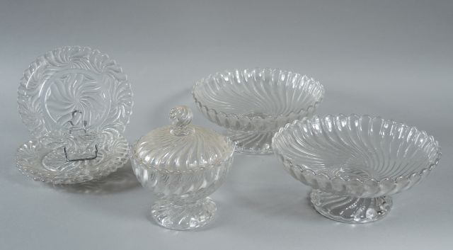 Paire de compotiers en cristal de Baccarat, un sucrier et cinq assiettes en cristal de Baccarat