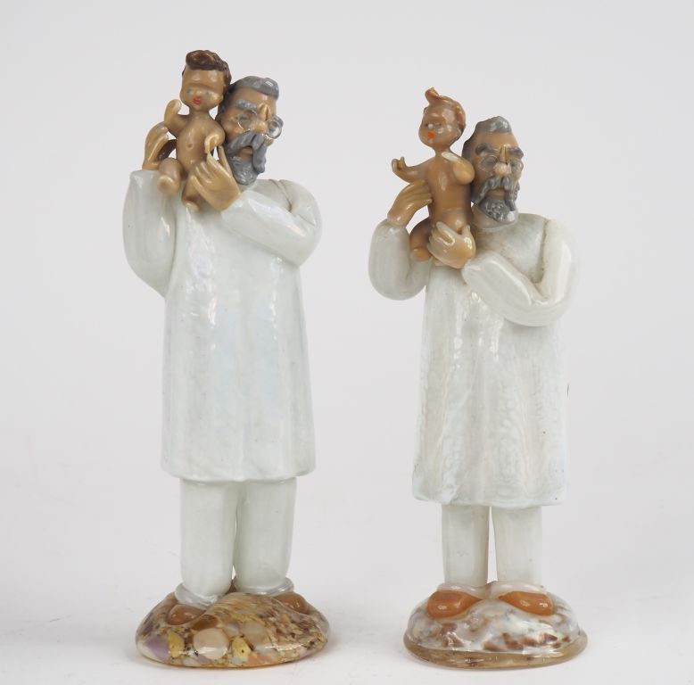 Paire de sujets en verre filé et soufflé polychrome "les pédiatres". H...
