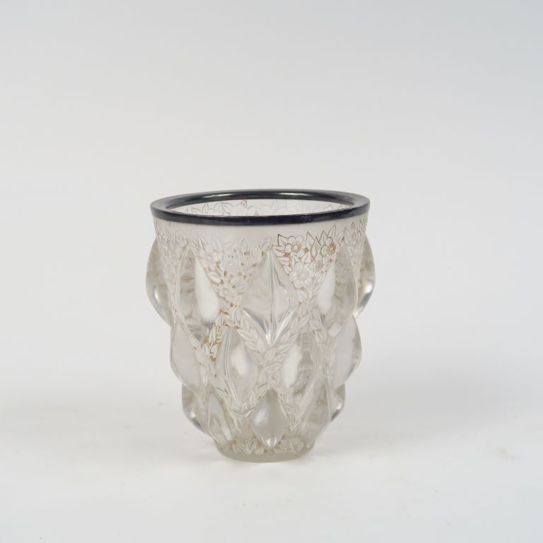 Lot de R. LALIQUE Vase en verre moulé-pressé, modèle "Rampillon". Signé. H au prix de 300 à 500 € en vente aux enchères par l'hôtel des ventes Primardeco