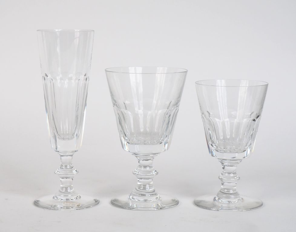 SAINT-LOUIS. Service de verres en cristal comprenant : 6 verres à eau 8 verres à vin 11 flutes Signés (3 égrenures)