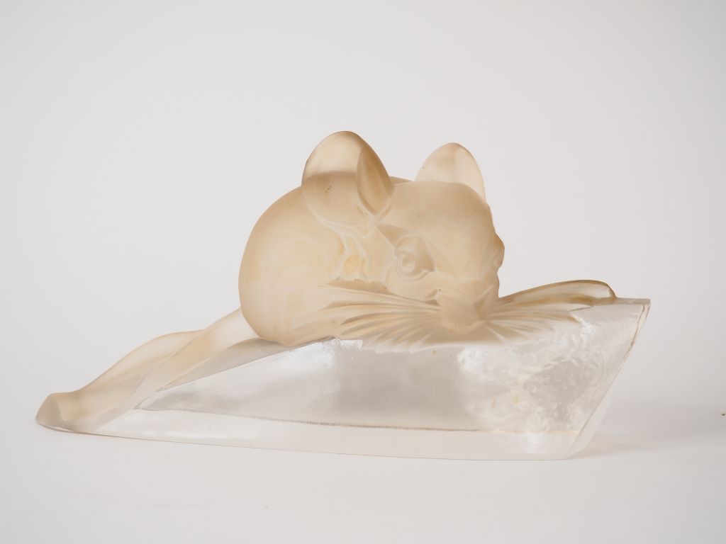 Lot de Sculpture Art déco en verre ou cristal « Souris » Dim. 13 x 22,5 cm au prix de 200 à 300 € en vente aux enchères par l'hôtel des ventes Primardeco