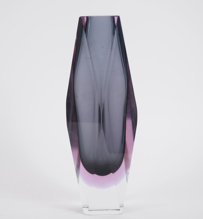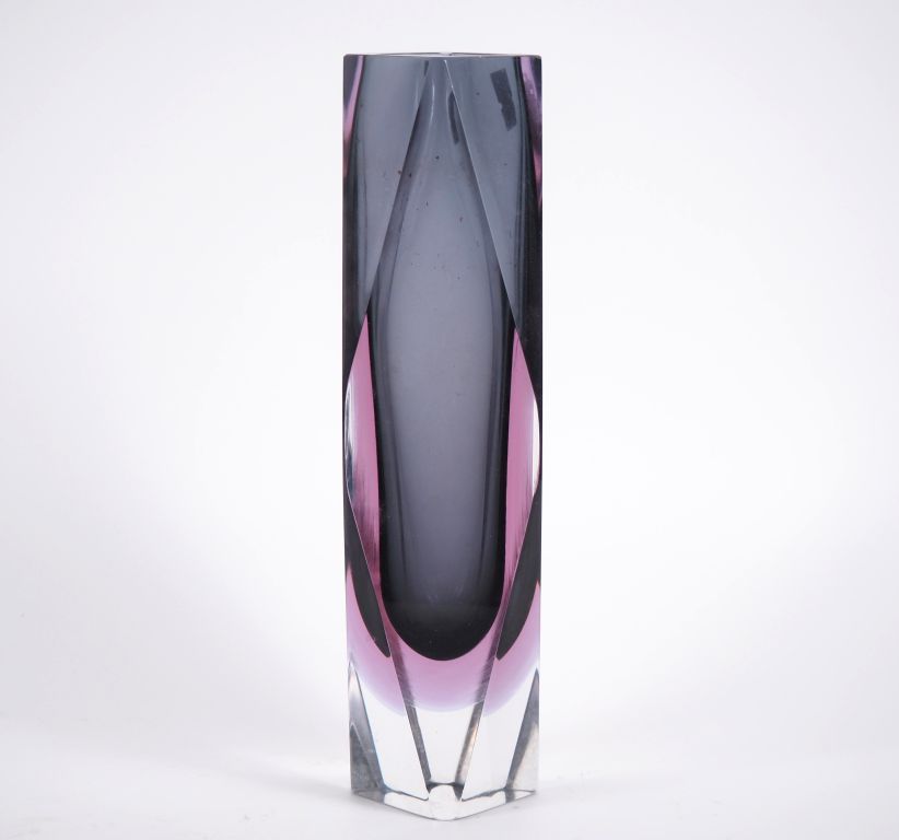 Vase en verre de Murano en cristal bicolore à décor géométrique. H. 30 cm.