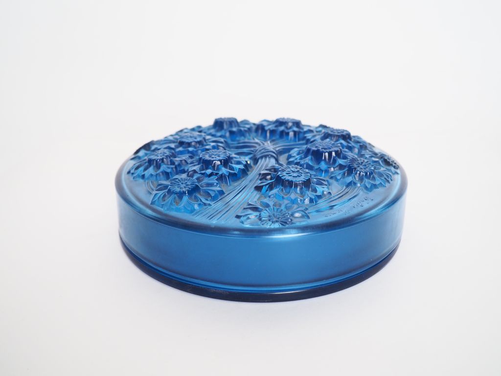 VERLYS France. Boite ronde en verre moulé, à décor d'un bouquet de fleurs. Signée. Diam. 17,5 cm