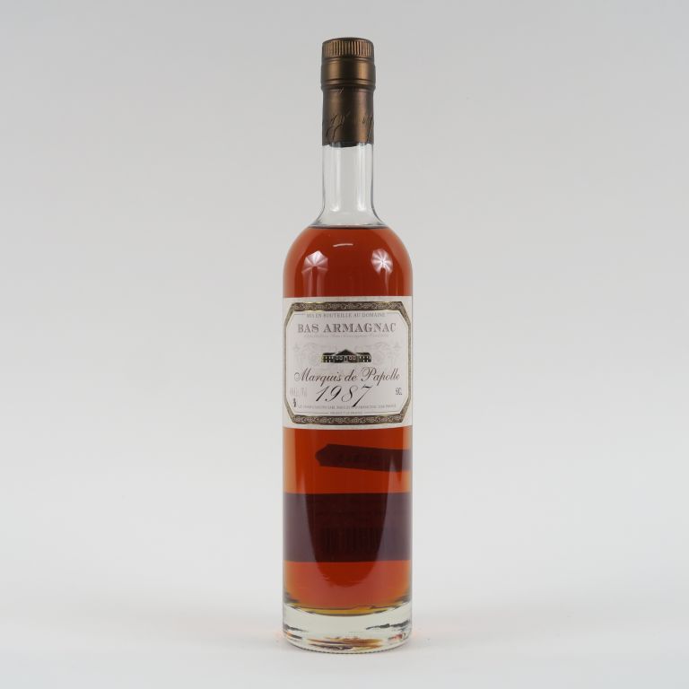 Lot de 1 BOUTEILLE (50 CL) BAS ARMAGNAC MARQUIS DE PAPOLLE - 1987 au prix de 35 à 40 € en vente aux enchères par l'hôtel des ventes Primardeco