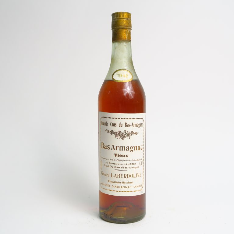 Lot de 1 BOUTEILLE BAS ARMAGNAC DOMAINE DE JAURREY GERARD LABERDOLIVE - 1942 au prix de 350 à 400 € en vente aux enchères par l'hôtel des ventes Primardeco