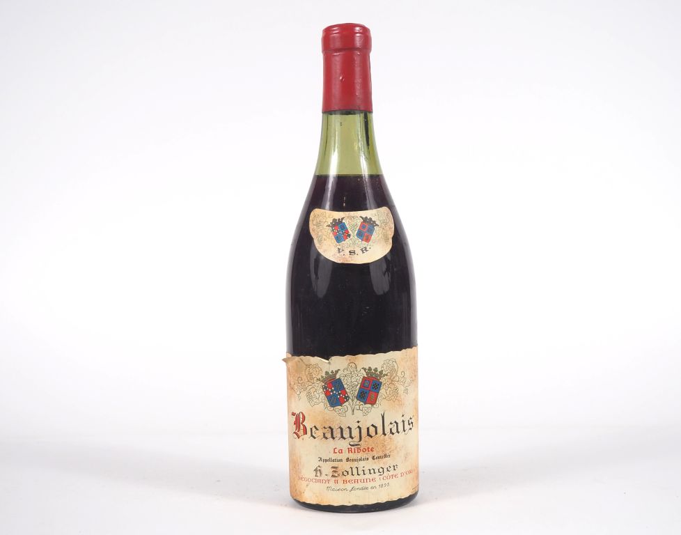 Lot de 1 BOUTEILLE BEAUJOLAIS "LA RIBOTE" V.S.R ZOLLINGER - NM - 3,9 CM au prix de 2 à 3 € en vente aux enchères par l'hôtel des ventes Primardeco