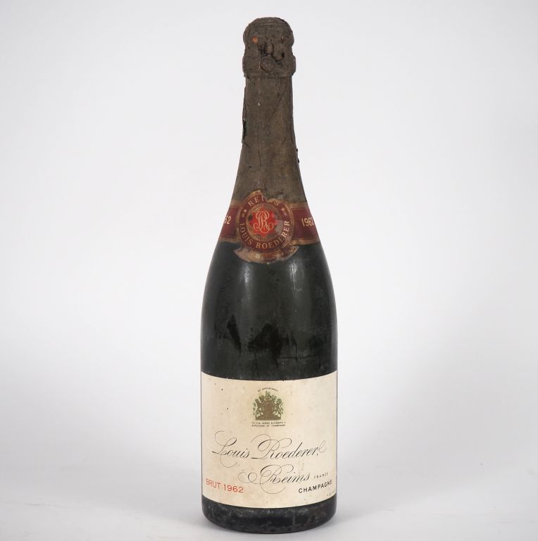 Lot de 1 BOUTEILLE CHAMPAGNE BRUT LOUIS ROEDERER - 1962 - BS/COIFFE ABIMÉE au prix de 40 à 60 € en vente aux enchères par l'hôtel des ventes Primardeco