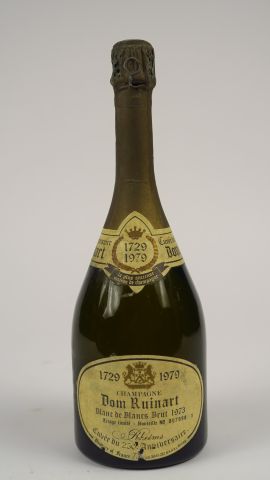 Lot de 1 BOUTEILLE CHAMPAGNE DOM RUINART BLANC DE BLANCS - 1973 - ETLA au prix de 100 à 110 € en vente aux enchères par l'hôtel des ventes Primardeco