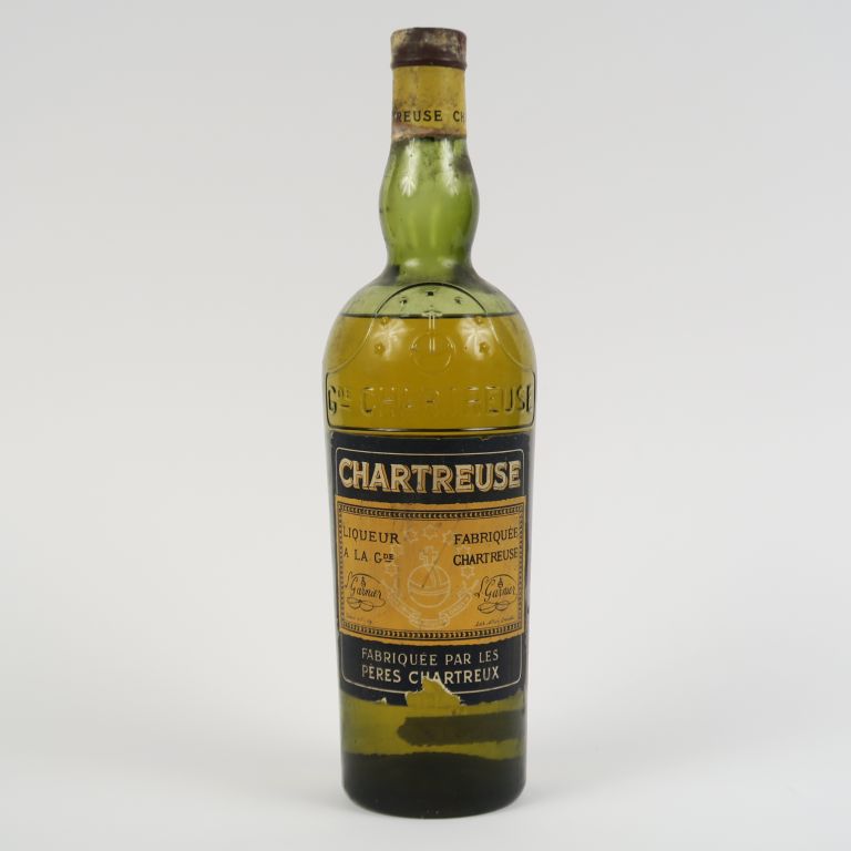 Lot de 1 BOUTEILLE CHARTREUSE JAUNE PÉRIODE 1956/1964 - CAPS LÉGER ABIMÉE au prix de 400 à 500 € en vente aux enchères par l'hôtel des ventes Primardeco