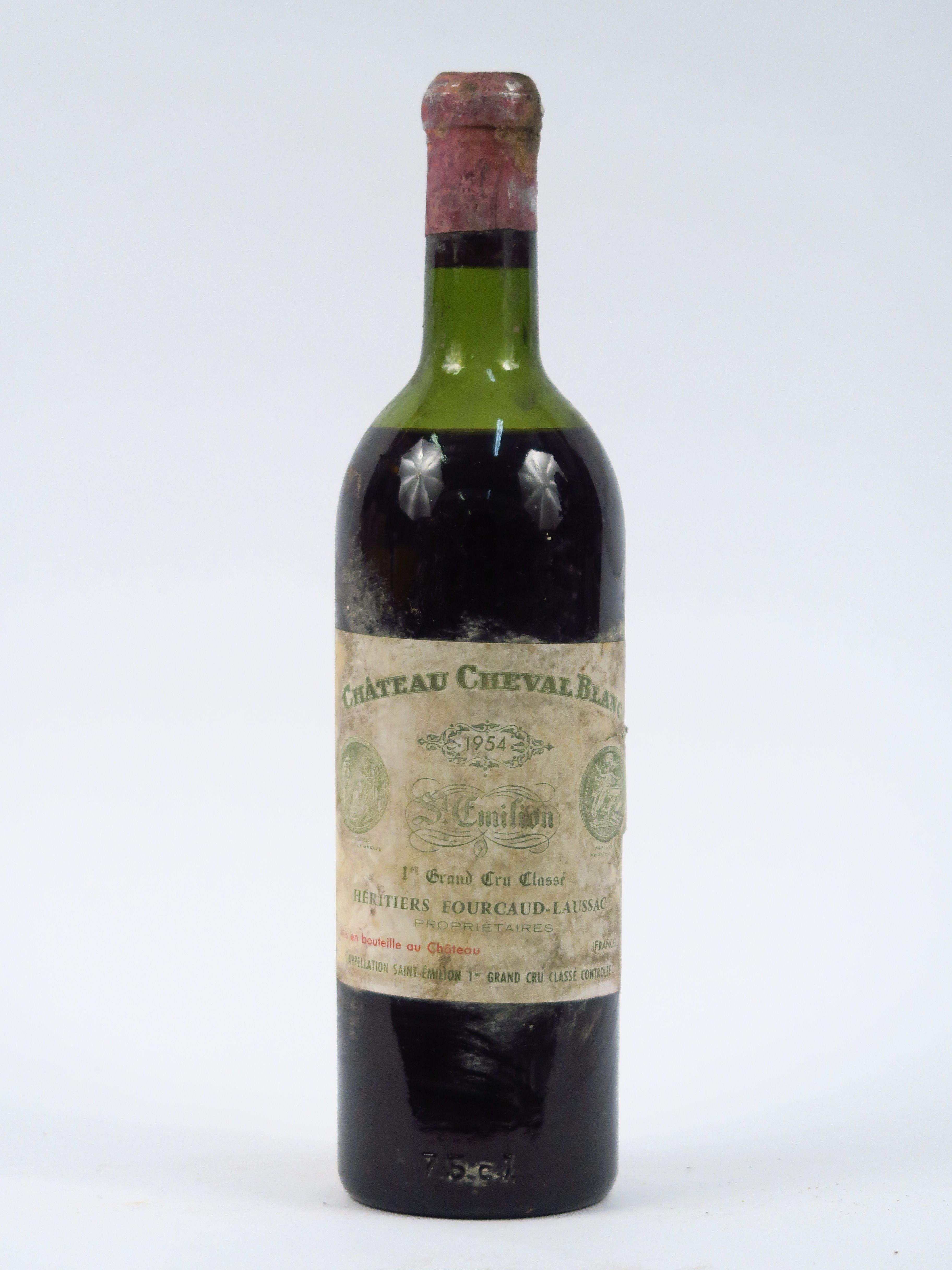 1 BOUTEILLE CHÂTEAU CHEVAL BLANC 1er GCC ST EMILION - 1954 - MEP/EF/CAPS SALE/CAPS CORRODEE/ELD