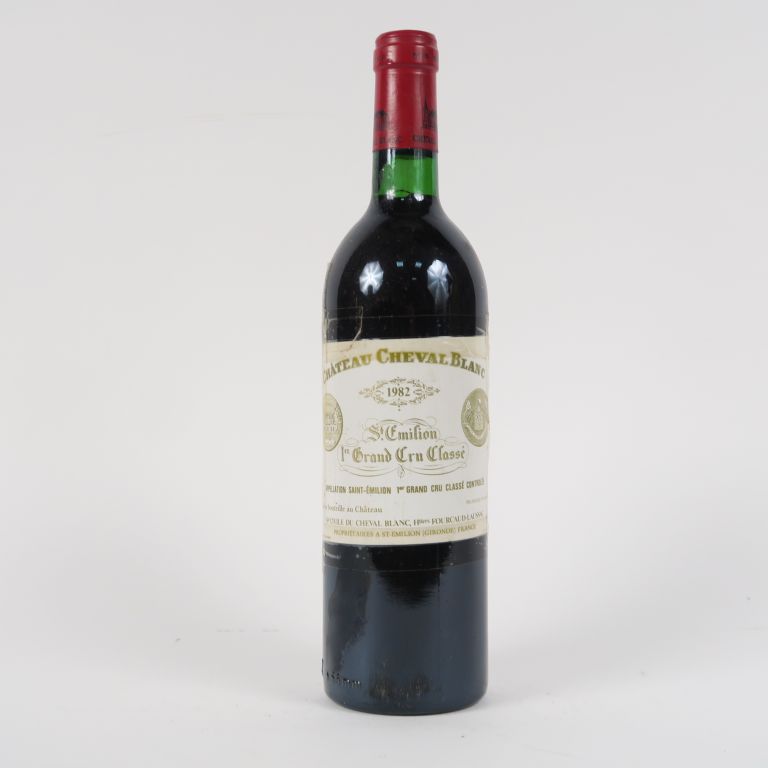 Lot de 1 BOUTEILLE CHÂTEAU CHEVAL BLANC 1er GCC ST EMILION - 1982 - BG+/ET SC au prix de 420 à 440 € en vente aux enchères par l'hôtel des ventes Primardeco