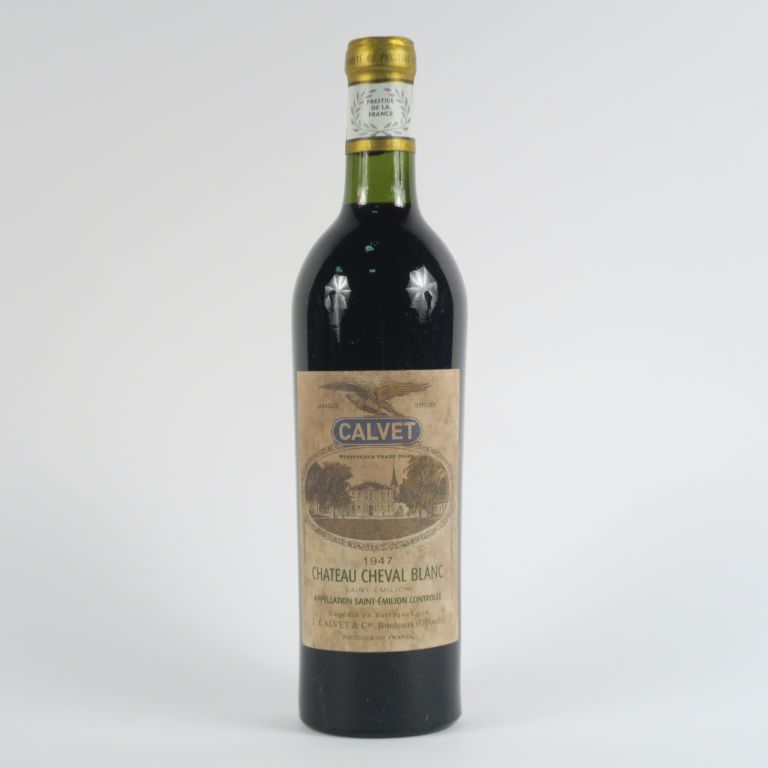 Lot de 1 BOUTEILLE CHÂTEAU CHEVAL BLANC MISE CALVET - 1947 - BG/ELF au prix de 600 à 700 € en vente aux enchères par l'hôtel des ventes Primardeco