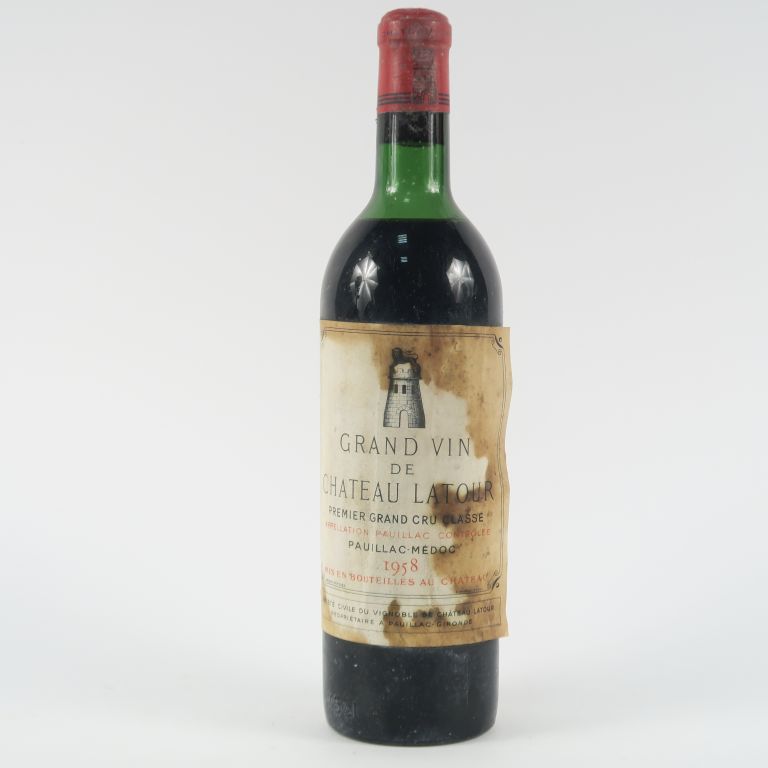 Lot de 1 BOUTEILLE CHÂTEAU LATOUR 1er GCC PAUILLAC - 1958 - HEP/ELA/ET au prix de 180 à 200 € en vente aux enchères par l'hôtel des ventes Primardeco