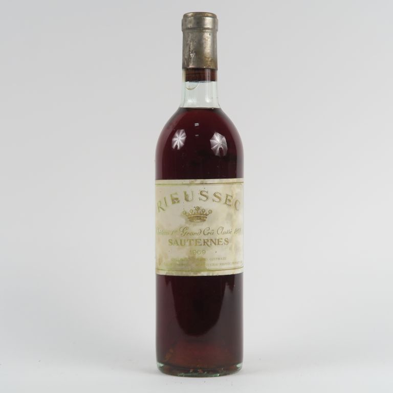 Lot de 1 BOUTEILLE CHÂTEAU RIEUSSEC 1er CC SAUTERNES - 1969 - BG/ET au prix de 40 à 50 € en vente aux enchères par l'hôtel des ventes Primardeco