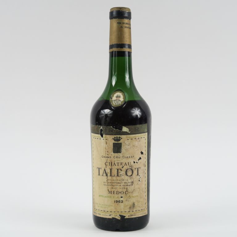 Lot de 1 BOUTEILLE CHÂTEAU TALBOT GCC SAINT JULIEN - 1962 - 6 CM/ELA au prix de 60 à 70 € en vente aux enchères par l'hôtel des ventes Primardeco