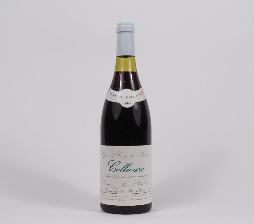 Lot de 1 BOUTEILLE COLLIOURE "LES PIBOUMS" DOMAINE DU MAS BLANC - 1984 au prix de 5 à 10 € en vente aux enchères par l'hôtel des ventes Primardeco