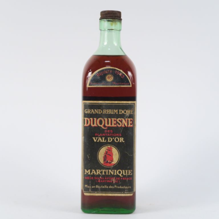 Lot de 1 BOUTEILLE GRAND RHUM DORÉ DUQUESNE 45° - 1943 - EXPORT USA au prix de 600 à 800 € en vente aux enchères par l'hôtel des ventes Primardeco