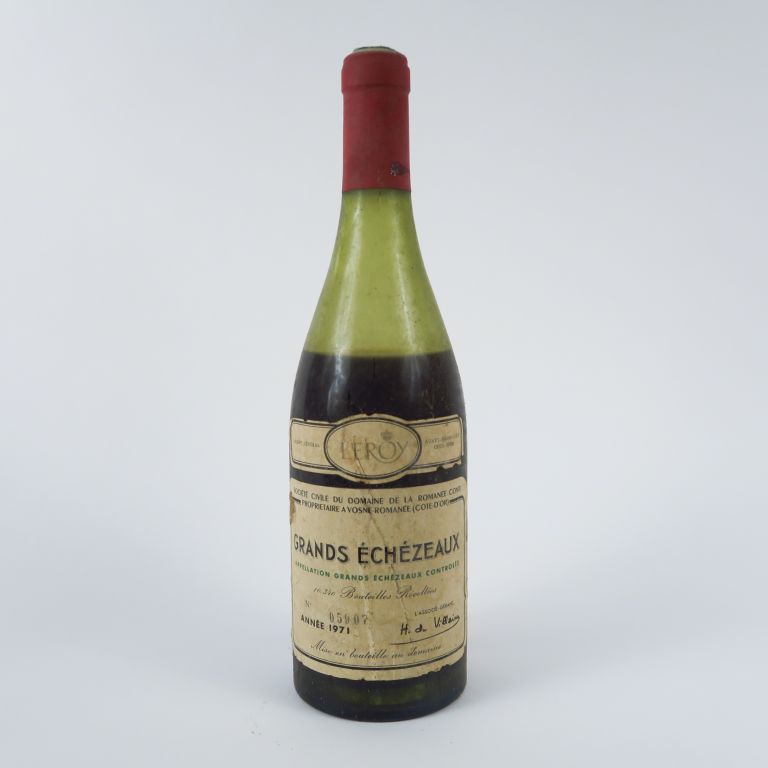 Lot de 1 BOUTEILLE GRANDS ECHEZEAUX DOMAINE DE LA ROMANEE CONTI - 1971 - 8 CM au prix de 100 à 150 € en vente aux enchères par l'hôtel des ventes Primardeco