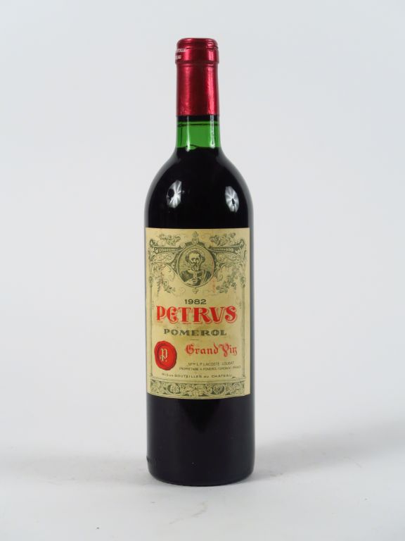 Lot de 1 BOUTEILLE PETRUS POMEROL - 1982 - BG/E DECOUPEE SUR LA PARTIE BASSE au prix de 2600 à 2700 € en vente aux enchères par l'hôtel des ventes Primardeco