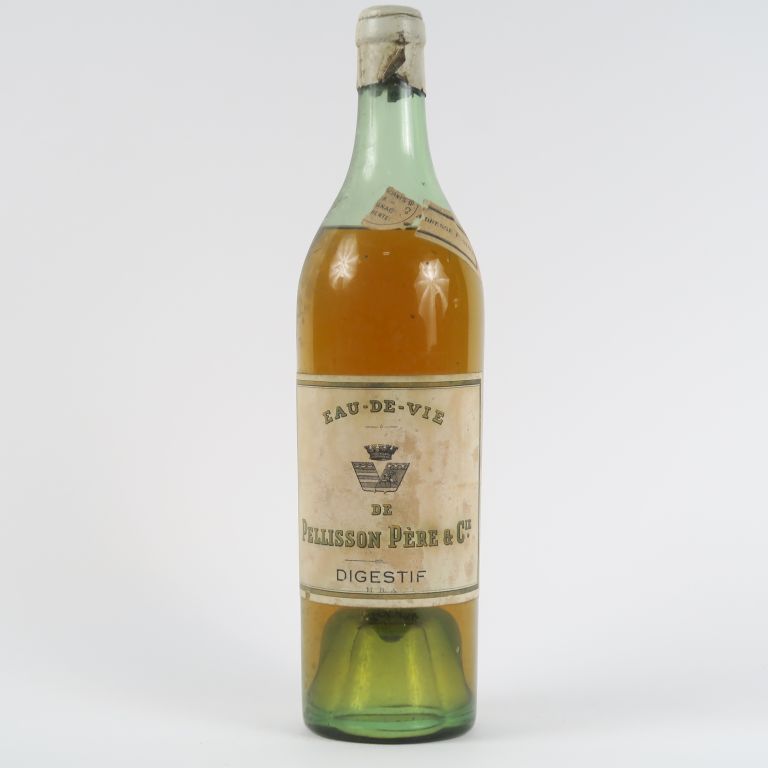 Lot de 1 VIEILLE BOUTEILLE EAU DE VIE DE PELISSON PÈRE CIE au prix de 15 à 20 € en vente aux enchères par l'hôtel des ventes Primardeco