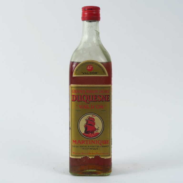 Lot de 1 VIEILLE BOUTEILLE GRAND RHUM D'OR DUSQUESNE 'VAL D'OR' 47° au prix de 40 à 50 € en vente aux enchères par l'hôtel des ventes Primardeco