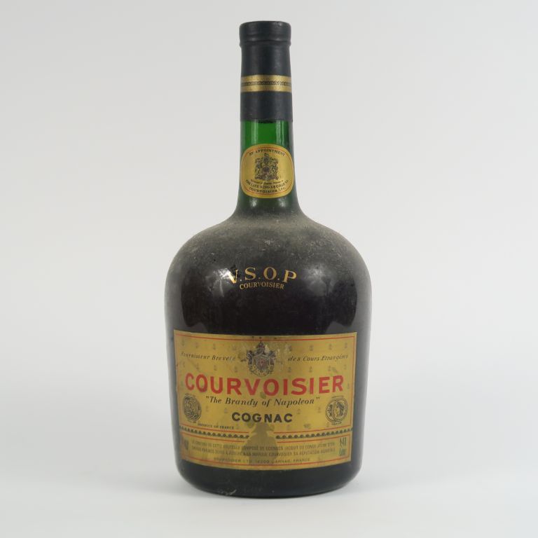 Lot de 1 VIEUX FLACON (1,4 L) COGNAC COURVOISIER V.S.O.P. - CAPS DÉCOUPÉE au prix de 50 à 60 € en vente aux enchères par l'hôtel des ventes Primardeco