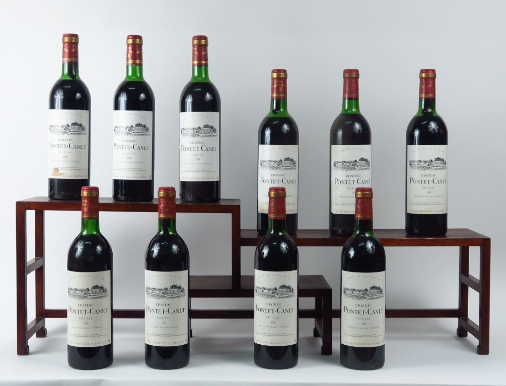 Lot de 10 BOUTEILLES CHÂTEAU PONTET CANET GCC PAUILLAC - 1981 - CBO - 3 LB/7 au prix de 160 à 180 € en vente aux enchères par l'hôtel des ventes Primardeco