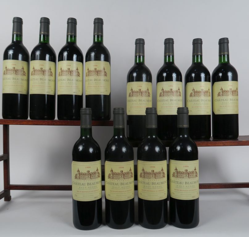 Lot de 12 BOUTEILLES CHÂTEAU BEAUMONT CB HAUT MÉDOC - 1996 au prix de 60 à 80 € en vente aux enchères par l'hôtel des ventes Primardeco