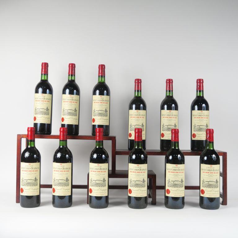 Lot de 12 BOUTEILLES CHÂTEAU GRAND CORBIN DESPAGNE GC ST EMILION - 1982 - CBO au prix de 950 à 1000 € en vente aux enchères par l'hôtel des ventes Primardeco