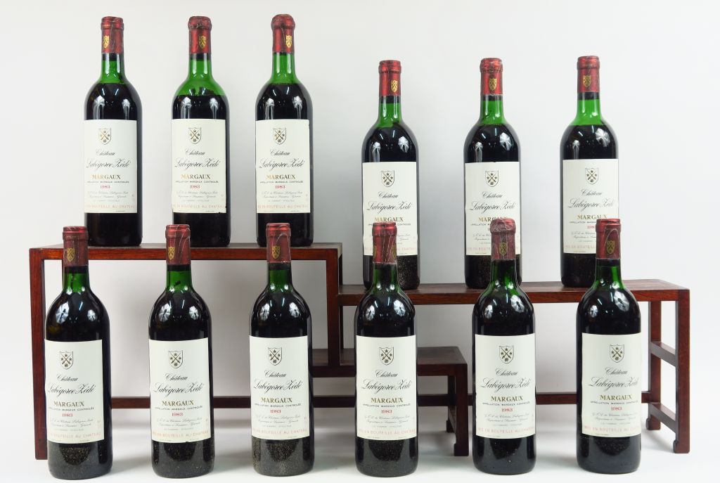 12 BOUTEILLES CHÂTEAU LABEGORCE ZEDE MARGAUX - 1983 - CBO - 1 BG/2 LB/2 LB-HEP/6 MEP/1 BEP-VIDANGE/3 CAPS AB