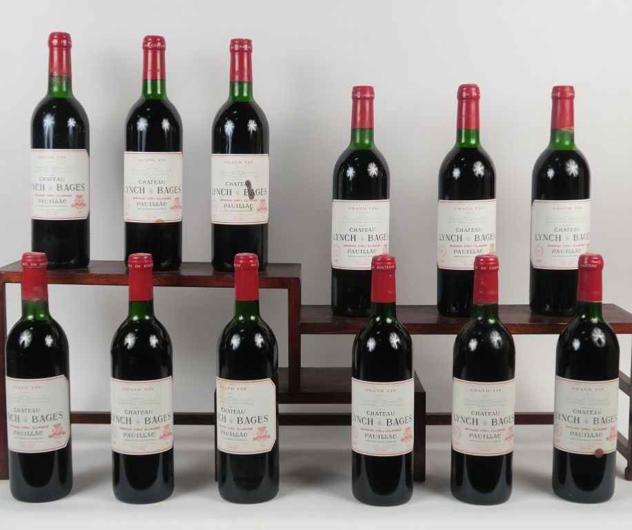 12 BOUTEILLES CHÂTEAU LYNCH BAGES GCC PAUILLAC - 1987 - CBO - 6 LB/1 LB-HEP/5 HEP/1 ET/3 CAPS LEGER CORRODÉES