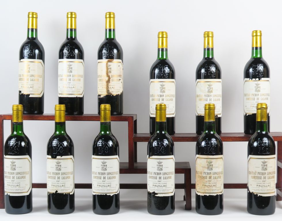 12 BOUTEILLES CHÂTEAU PICHON LONGUEVILLE COMTESSE DE LALANDE GCC PAUILLAC - 1987 - CBO - 5 BG/4 LB/2 LB-HEP/1 HEP/9 EA