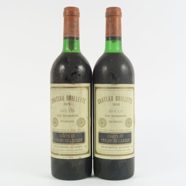 Lot de 2 BOUTEILLE CHÂTEAU BRILLETTE CB MOULIS - 1976 - BG-LB/BLS au prix de 20 à 30 € en vente aux enchères par l'hôtel des ventes Primardeco